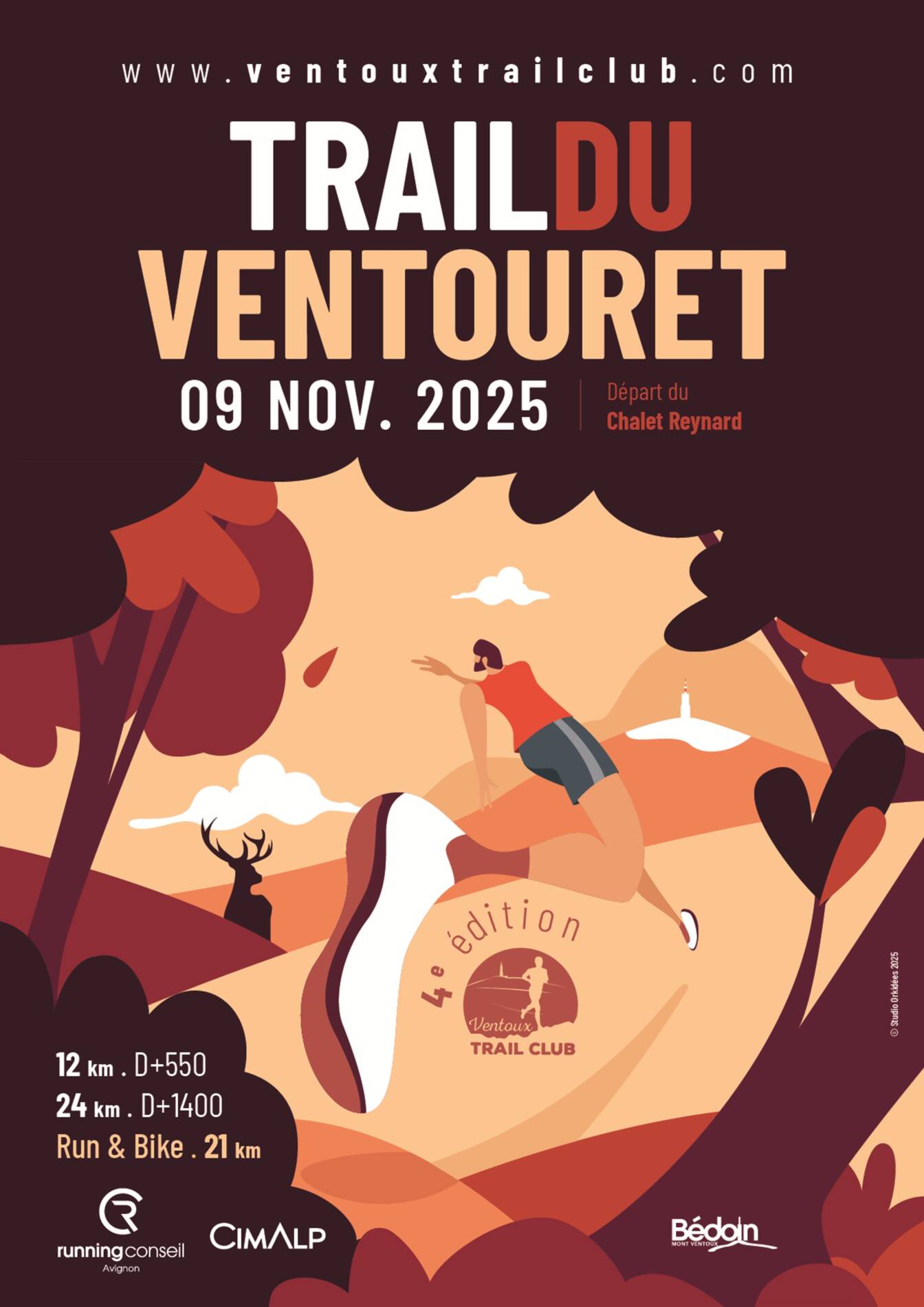 Rendez-vous le 9 novembre 2025, au Chalet Reynard, pour cette nouvelle fête du Ventoux et du Trail avec cette 4ème édition : Toujours le classique 12 km, un tout nouveau parcours pour le 24 km passant au sommet du Ventoux, un Run & Bike sur un parcours accessible à tous de 21 km, une rando de 7 km et des courses enfants.